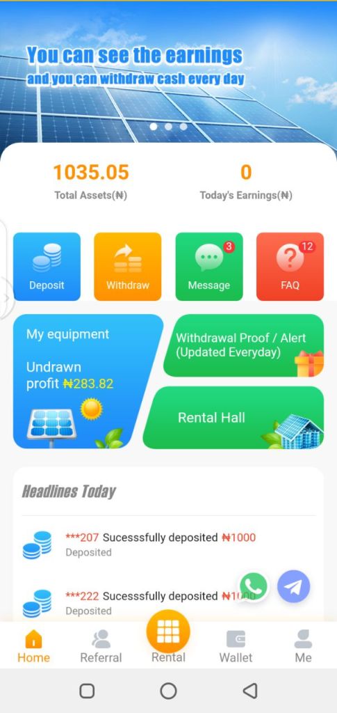 The platform claims to allow investors rent and lease solar energy panels, and earn every hour, this accumulates to about 25% every week. You can get this continuously for 12weeks.